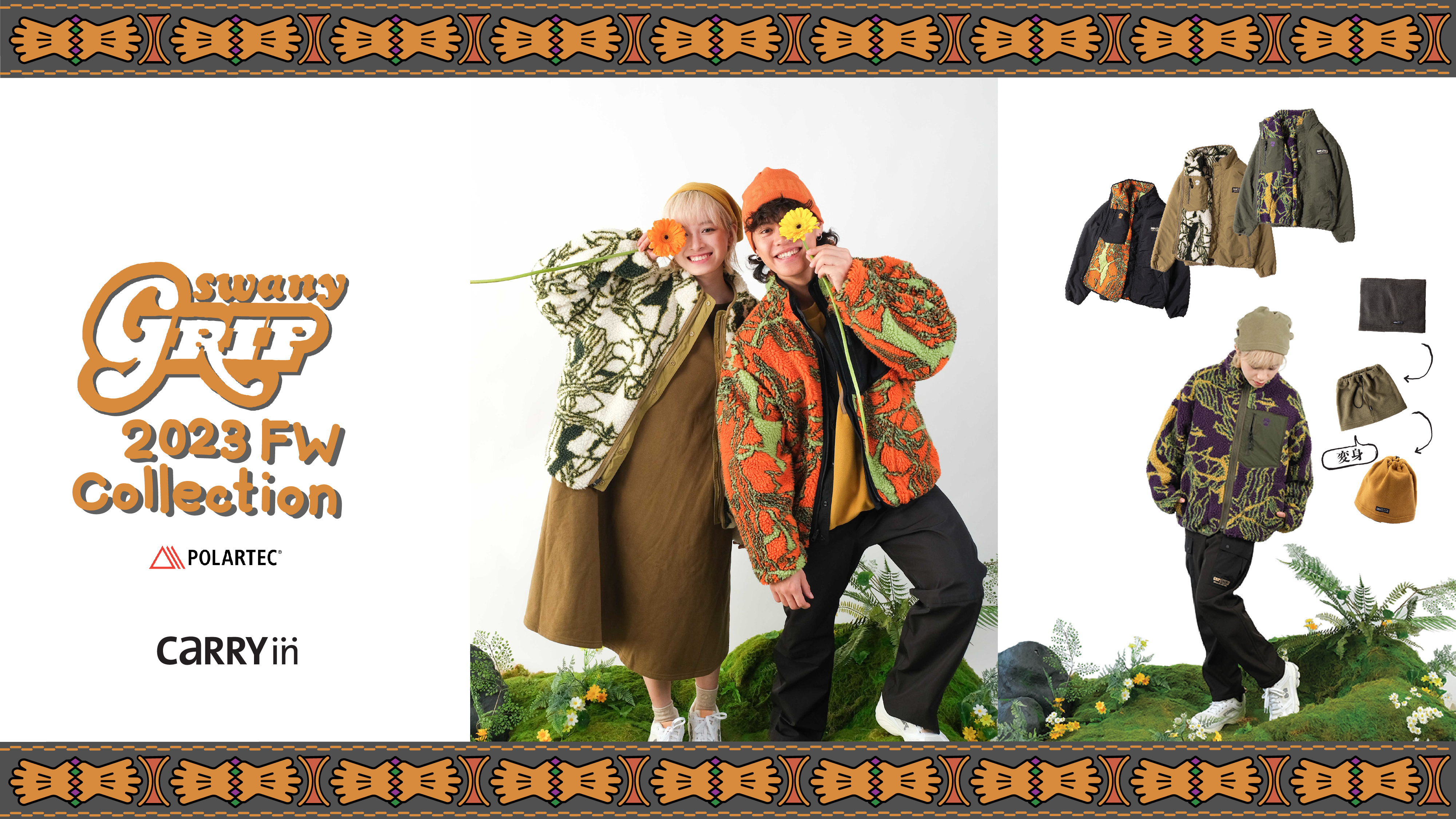 Grip Swany 源於美國1848年開發礦場用的手套,至今由日本公司經營。2010年起把皮革製作的技術帶到露營戶外服飾產品的發展,近年來與不同品牌合作推出聯名款。用以彈性布料 Supplex 以及難燃加工的 Fireshield,當中更重點加入功能性多口袋設計,著重衣物的實用性質。