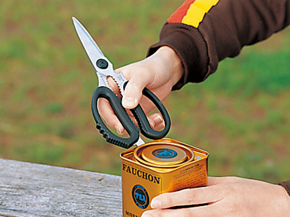 剪刀配搭小刀並附帶收納套,應付一切戶外煮食的狀況。加硬材質的不銹鋼剪刀能處理堅硬至蟹殼的食材,更附有鋁罐及玻璃樽開瓶器等等。